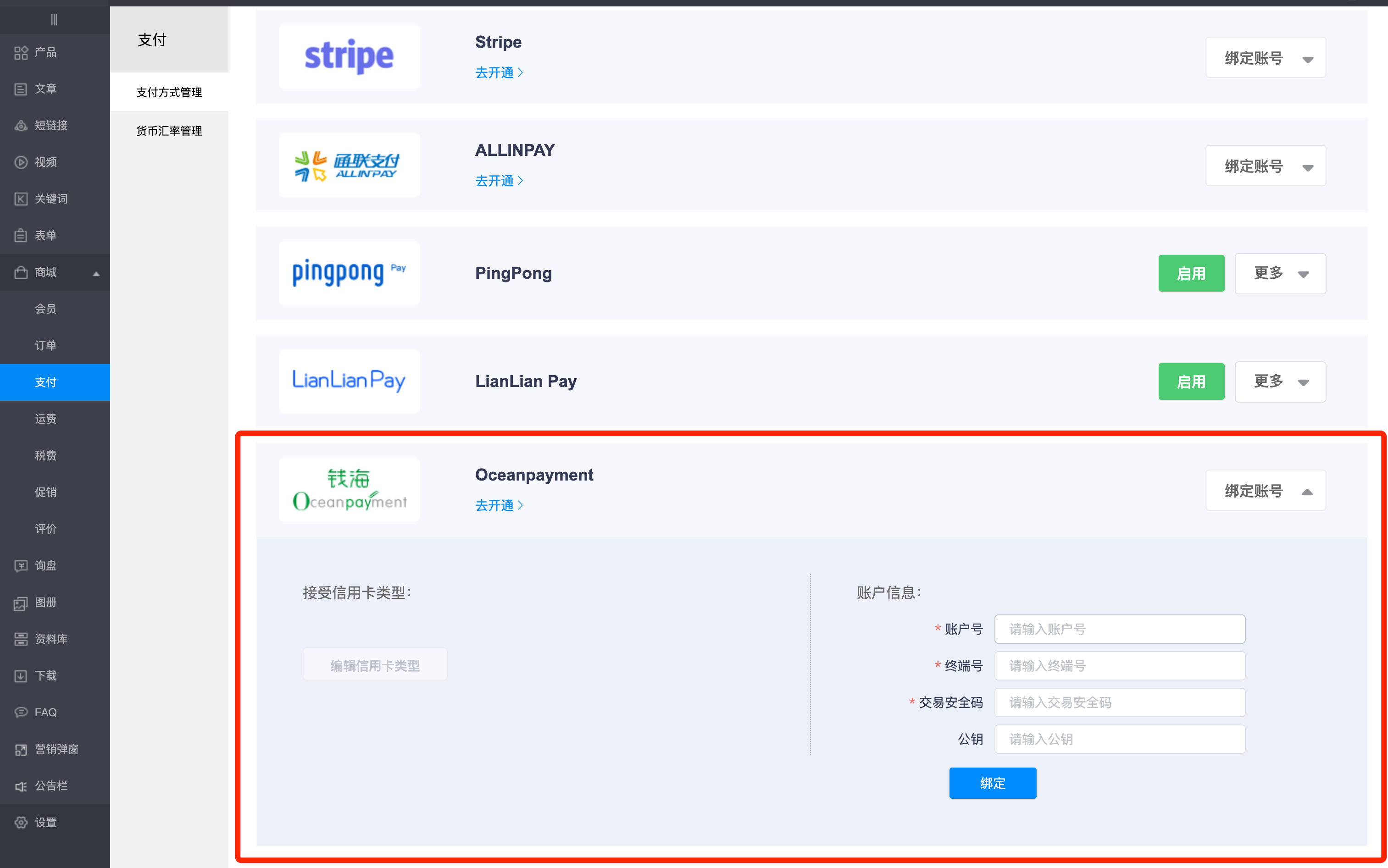 5. 支付系统2.0新对接钱海支付(Oceanpayment);