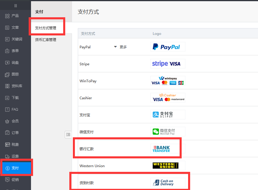 (一)支付方式管理