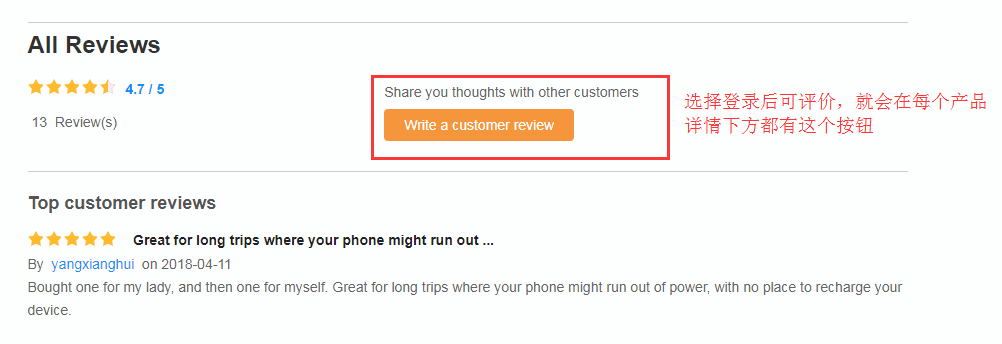 需要先注册为网站会员,然后下单,在订单中,找到要评价的订单,后面有评价入口(如下图所示Review入口)。