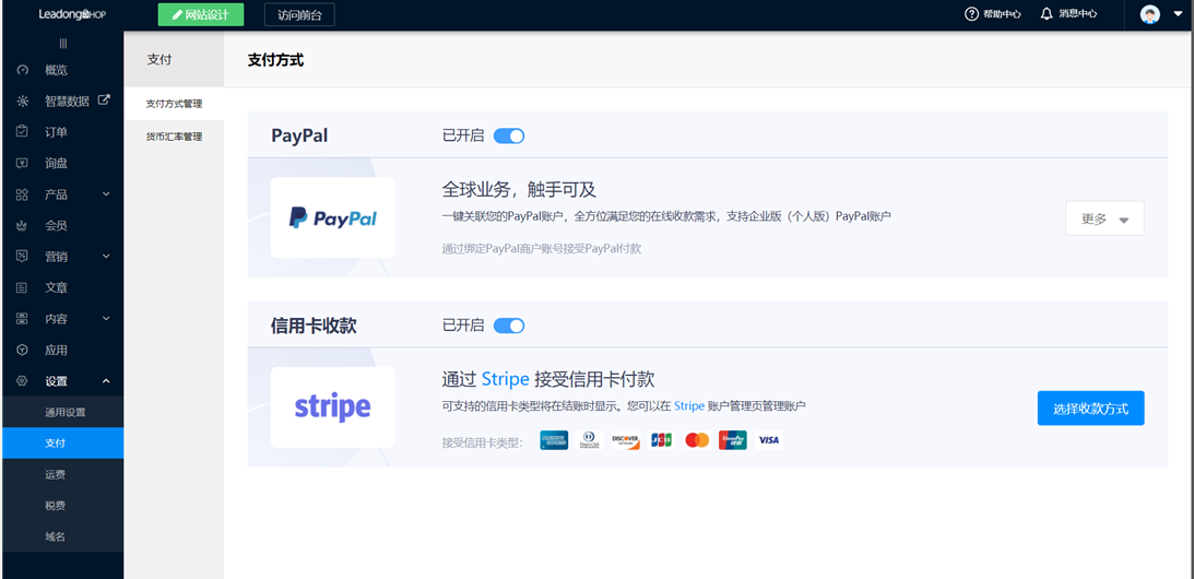 开启Stripe-Card支付并进行相关设置。